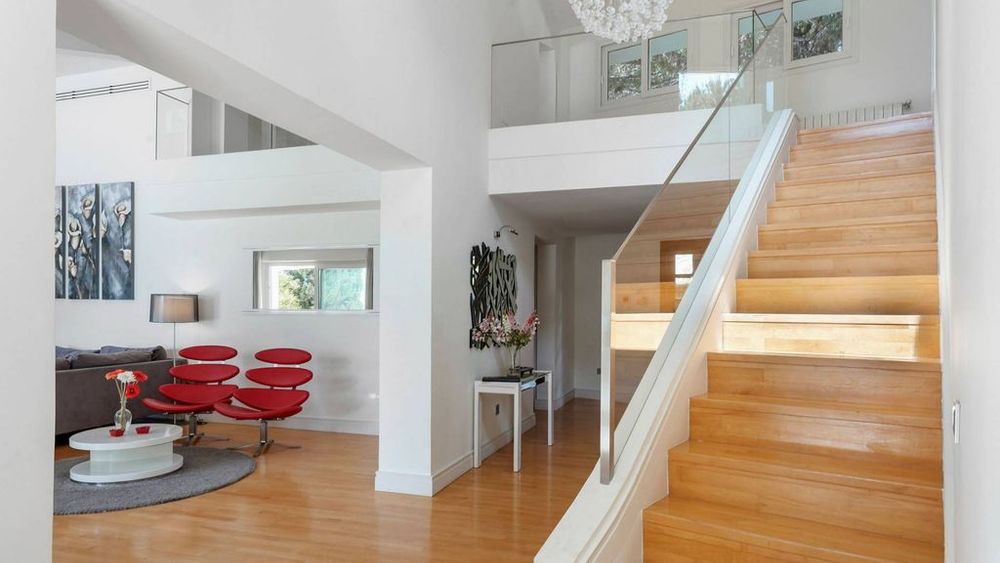 The villa boasts a modern Scandinavian design, emphasizing light-filled open spaces and clean lines. Spanning three levels, the home features a lounge with a cosy fireplace and access to a semi-covered porch with dining and seating areas, leading to a 100 sqm swimming pool and sun deck. A designer Nolte kitchen with a central island flows seamlessly to an outdoor dining area complete with a professional BBQ. Five well-appointed bedrooms on the main level ensure comfort for family and guests, while the upper floor is dedicated to the luxurious master suite with a panoramic garden and sea views.