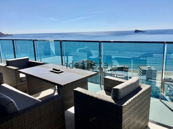 Magnifico apartamento en un conjunto residencial único, a un paso del mar, en segunda línea de playa Poniente de Benidorm. Su diseño moderno, con ventanas panorámicas y altos techos crean la máxima sensación de espacio, llenando la casa de luz natural y le permite disfrutar de las mejores vistas al infinito mar desde todas las estancias de la casa.