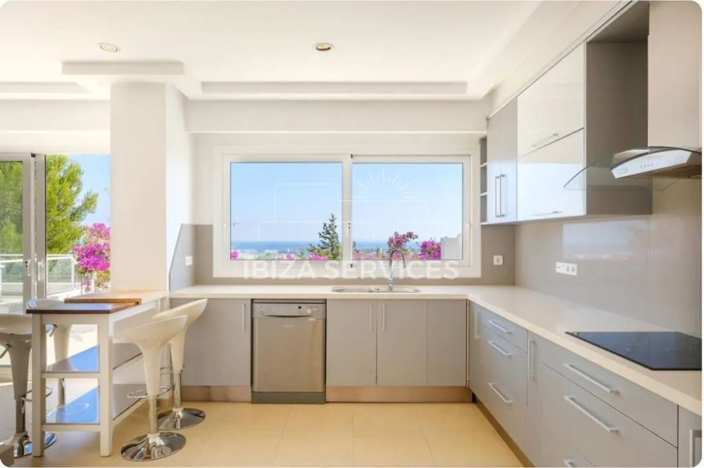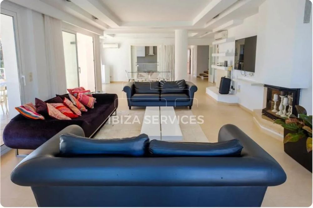 Desde la villa se puede disfrutar de vistas panorámicas al mar, Salinas, Playa d’en Bossa y al emblemático castillo de Ibiza. El entorno es tranquilo y privado, con acceso cercano a playas, servicios y puntos de interés.