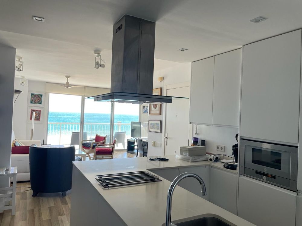 Cosnta de 3 habitaciones para 5 personas , 2 baños completos con ducha, cocina ofice totalmente equipada con lavavajillas , comedor y terraza con vistas directas a la playa .