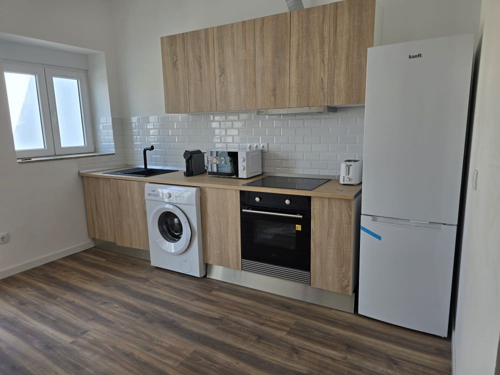 A cozinha encontra-se totalmente equipada com placa, forno, exaustor, combinado, máquina de lavar roupa e pequenos eletrodomésticos, estando ainda ligada diretamente a uma varanda com excelente exposição solar e permite desfrutar de momentos ao ar livre com toda a comodidade.