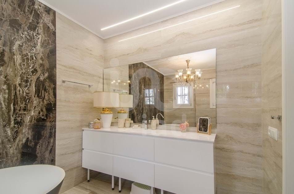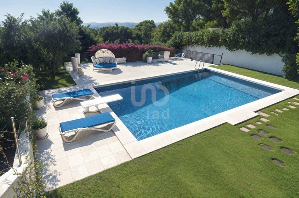 Elegant Mediterranean Luxury Villa with a guest house for Rent in Vallpineda, SitgesAn unique opportunity to rent this stunning and spacious unfurnished house with a fully equipped kitchen on a long term basis. Situated in the prestigious and secure residential neighborhood of Vallpineda, this stunning Mediterranean-style villa offers the perfect blend of elegance, luxury, and modern comfort. Set across multi-leveled manicured gardens full of mature trees, plants and providing space and privacy. The property provides generous living space and exceptional outdoor areas:A 1291 m plot featuring the main villa (482 m), fully reformed in 2018 with high-quality materials and exquisite attention to detail, hosting a charming 45m2 guest/staff cottage, a 45 m swimming pool, and a private garden with independent street access.Layout & Features:The villa is spread across three spacious floors, with split airconditions, heating using radiators, two big chimneys in the livingrooms, security cameras and a closed garage.Main Floor: Welcoming hallway with a grand wooden staircase.Large living room with a fireplace, integrated open-plan kitchenette and dining area. Elegant double French doors opening onto a covered terrace with breathtaking panoramic views. A Double bedroom with direct terrace access with sea views. On the same level there is also a full bathroom with bathtub.First Floor:Bright hallway leading to three double bedrooms, all filled with natural light. Two bedrooms offer direct access to the upper terrace enjoying the spectacular sea and city views.Lower Floor: A second grand living area with fireplace, dining zone, and a modern open-plan kitchen. Direct access to the garden patio with chill-out area and a built-in barbecue, ideal for entertaining. A full bathroom with double rain shower.Guest/Staff Cottage & Garden:Walking through the lush landscaped gardens leads you to the second plot, where youll find: A private 45 m swimming pool. Guest/staff cottage with an open loft-style living area, American kitchen, and full bathroom with shower. Independent street access and a private garden.Location:The villa is ideally located just 5 minutes walk from the International British School, Sitges Tennis Club, and local supermarkets. The sunny beaches of Sitges are only 10 minutes away, while Barcelona International Airport is a 35-minute drive, ensuring convenience and connectivity.This exceptional villa is perfect for families, professionals as a luxurious residence to enjoy under the Mediterranean sun.