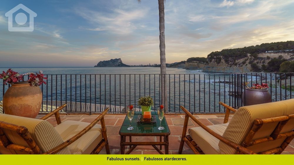 This fantastic villa is located RIGHT BY THE SEA in a privileged location. It is situated in one of the most beautiful coves of the Costa Blanca, just 5 minutes from the charming fishing village of Moraira, famous for its spectacular sandy beaches with crystal-clear waters.
