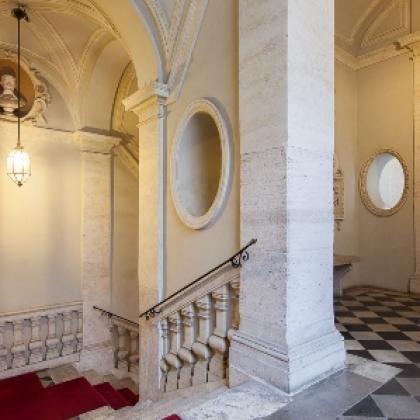 This elegant apartment is located inside a splendid and historic 15th-century Noble Palace. The property, which spans about 220 square meters, is characterized by an atmosphere of great charm and refinement. Access is through two separate entrances that lead to a large living room, a dining room, a modern kitchen, four bedrooms, four bathrooms, and a small terrace. The apartment is located in one of the most beautiful buildings in the ancient Jewish Ghetto. This historic palace, with its original facade, was home to an ancient Roman noble family and has served as a backdrop for famous films like The Talented Mr. Ripley and The Leopard. Residents can enjoy a lovely internal courtyard, a full-time doorman, and an elevator, in addition to a majestic staircase. Situated in the heart of Europe's oldest Jewish Ghetto, the palace is in an elegant area full of restaurants, bars, and cafes, just a few minutes' walk from all the main sites of ancient Rome and Trastevere.