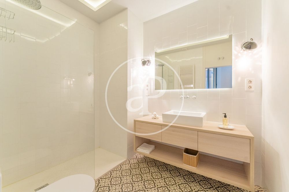 Designed by the architect Antonio Farres Aymerich, the building is part of the group of emblematic buildings of the Modernist Madrid of the early nineteenth century. The elegance of the facade reveals lintels, corbels and grilles of modernist character, but it is the entrance to the portal that takes us to the very heart of the "art nouveau" of Paris, which with the hallway and staircase decorated with painted plaster plant elements together form a modernist air that is surprising for its elegance and beauty. All the apartments in the building have television, internet, individual heating, air conditioning, fully furnished kitchen, washing machine, dryer, refrigerator, oven, microwave, dishwasher, induction hob, double set of sheets and towels, complete kitchenware and small appliances (blender, toaster, Nespresso, hairdryer, iron, kettle). In addition, the services of electricity, water and gas, gym, Internet connection, weekly cleaning hour, physical concierge 5 days a week are included. Can you imagine living here?