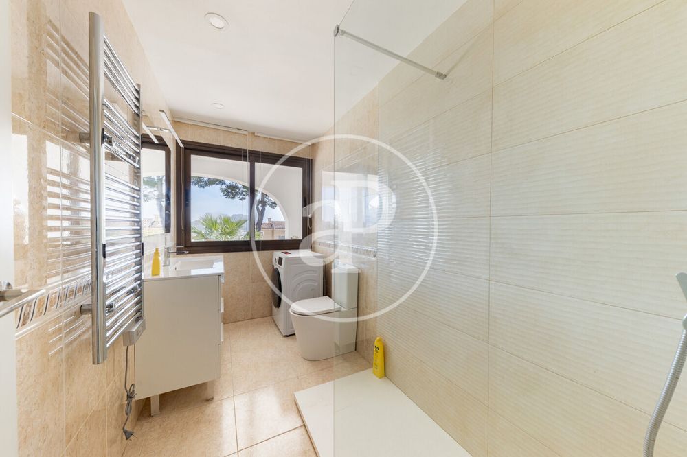 This magnificent ground-floor apartment is available for rent in a detached house in Palmanova. It has been completely renovated and designed in a modern, bright and very welcoming style. The property stands out for its spaciousness, its connection with the outdoors and its excellent location, perfect for those who want tranquillity without giving up the convenience of having everything close by. Upon entering, we find a spacious and very bright living-dining room thanks to its large grey sliding windows that provide direct access to a spectacular private terrace of approximately 50 m². From here, you can enjoy pleasant views of the garden surrounded by vegetation. The property features a designer open-plan kitchen in white tones, fully equipped and with a comfortable central island, ideal both for cooking and for informal dining. The open layout between the kitchen and the living room provides a great sense of space and flow throughout the area, complemented by ceramic tile flooring that aesthetically unifies the entire home. There are two double bedrooms, both with built-in wardrobes and exterior windows that provide natural light and pleasant views. The renovated bathroom, spacious and functional, includes a large walk-in shower, an exterior window and space for a washing machine. As an added value, the property also includes a storage room, grey-framed windows, air conditioning and an outdoor area with easy parking, providing extra comfort for everyday living. The location is ideal: just a few minutes from the beaches of Palmanova, very close to golf courses, green areas, supermarkets and restaurants, and with excellent bus connections to Palma city centre, making it easy to get around without needing a private vehicle. A modern and practical home with an exceptional terrace, perfect for those looking to live close to the sea and surrounded by nature.