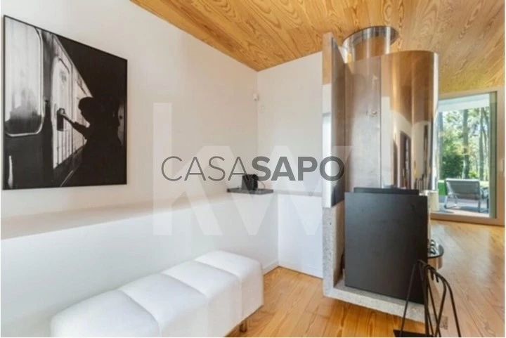 No piso térreo tem 3 suítes mobiladas, cozinha totalmente equipada e sala de jantar No piso -1 ao nível da piscina e jardim tem a sala com lareira ,escritório e sala de cinema e mais uma suíte Tem aquecimento central de chão radiante e sistema de segurança
