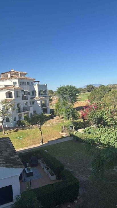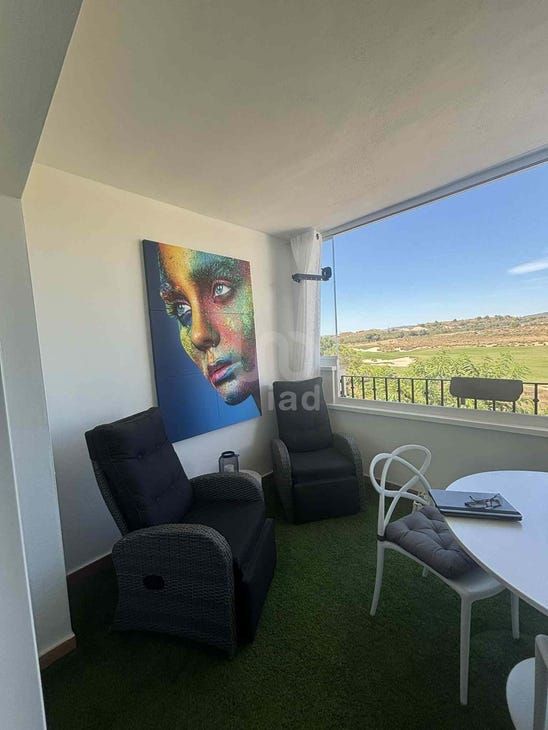 Magnificent furnished apartment located in a superb golf resort in Sucina, offering peace and quiet and exceptional views.Long-term rental: minimum 1 year.- Surface area: furnished apartment (2 bedrooms) with built-in wardrobes.- Bathroom: XXL walk-in shower.- Terraces: two small terraces at the front and a large rear terrace directly overlooking the golf course; this rear terrace can be closed in winter and converted into a living room.- Kitchen: fully equipped (dishes, coffee maker, toaster, and other utensils).- Amenities: internet, air conditioning, fans, and heating for winter.- Utilities: electricity, gas, internet, and utility bills (235 euros/month) not included in the rent.- Location: nearest beach 21 km, Alicante airport 81 km.- Resort amenities: restaurant, grocery store, bike rental, 2 tennis courts, 2 padel courts, 2 petanque courts, 5 swimming pools, underground parking for 2 cars with remote-controlled gate. Resort guarded 24/7.