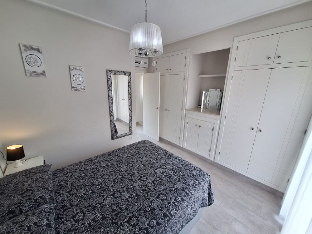 The property has been fully renovated and offers two cozy bedrooms with furniture and spacious wardrobes, two modern bathrooms, a fully equipped kitchen with appliances, air conditioning, underfloor heating, dishwasher, and washing machine. Bright interiors in a modern style create a warm and welcoming atmosphere. The house also features