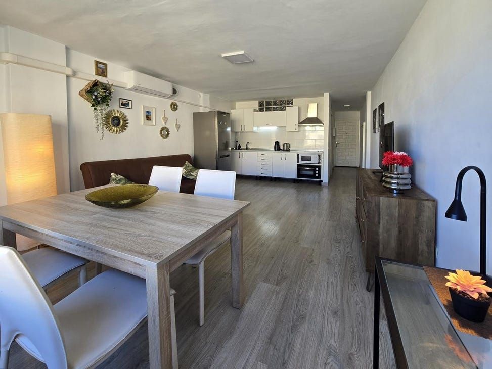 AVAILABLE FROM MARS 2026NOT AVAILABLE FOR LONG-TERM RENTAL OR PERMANENT RESIDENCE.Nordicway is proud to present this elegant and fully equipped 1-bedroom apartment, located in the heart of Playa del Ingls. Its strategic location allows you to enjoy all the amenities this vibrant destination has to offer.This cozy apartment not only stands out for its modern and functional design but also for being surrounded by everything you need for a comfortable stay: supermarkets, bars, restaurants, and the most popular shopping centers in the area, such as the famous C.C. Yumbo and C.C. Ronda de San Fernando.Furthermore, its proximity to the beach makes it a perfect choice for those looking to relax under the sun or explore the lively local scene. The excellent transport connections and multiple nearby bus stops make it easy to comfortably discover the rest of the island.The apartment is part of a complex with an elevator, which includes a communal pool and a secured area with access for parking vehicles. The parking is outdoors and subject to availability, as spaces are not fixed or covered.The apartment features a bright open-concept living room-kitchen, offering a pleasant sense of space and comfort. In the living room, youll find a comfortable sofa bed, a Smart TV, and a dining table with seating for four people.The kitchen is fully equipped with everything you need to prepare your favorite meals, including a ceramic hob, mini oven, microwave, kettle, toaster, coffee maker, and a spacious fridge-freezer. Additionally, it includes all the basic utensils for cooking with ease.The space is air-conditioned and has large sliding windows that open almost entirely, allowing in plenty of natural light and fresh air.The bedroom features two single beds that can be joined together as desired, as well as a spacious wardrobe providing all the necessary storage space for your belongings.To complete this cozy apartment, the modern bathroom includes a practical shower, a washing machine, and a hairdryer.Parking space subject to availabilityPrice1, 150/month, including water and electricity expenses up to a maximum of 50/month. Fiber optic internet is included in the price.RequirementsVerifiable financial solvency.One months deposit, the current months rent, and an agency fee equal to one months rent plus 7% IGIC.N asignado de Regstro nico: ESFCNT00003501300034803000000000000000000000000000009Please contact us for more information.The above information is for informational purposes only and is subject to errors or omissions.