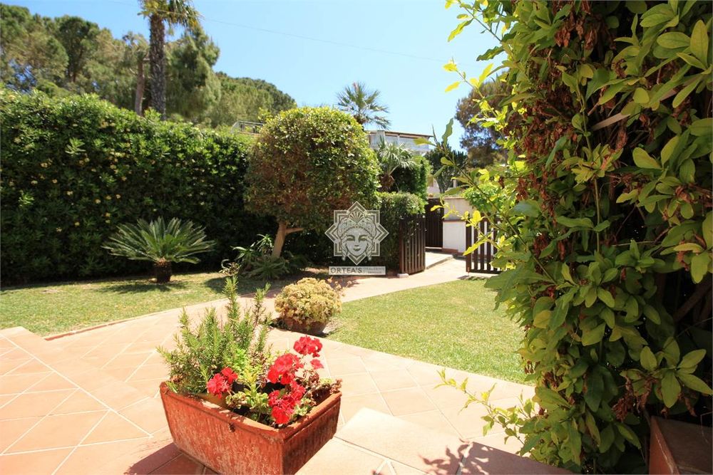 Il giardino è ben curato con piante ornamentali con un patio terrazzato con arredi da esterno ad uso solarium. La villa dispone di due posti auto al coperto all'interno del residence.