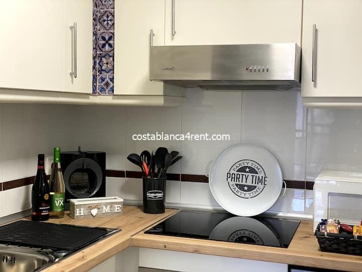 Winter let La Cala Gemelos 24 Apartment with spectacular views 75 m from Playa de la Cala de Finestrat (Benidorm). WiFi 600 Mb. Air-conditioning. Pool, gym, sauna, surrounded by restaurants, shops, supermarkets, pharmacy, market (Tuesday and Saturday). Bus and Taxi. Kitchen: washer-dryer, oven, dishwasher, microwave, coffee maker, blender, iron, full kitchen, breakfast kit and welcome (sparkling white wine and red bottles). Bathroom with shower plate, accessible, hairdryer, amenities.
