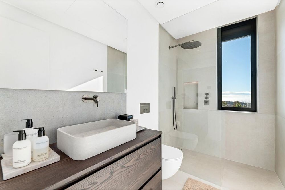 The home features five stylish bedrooms and five bathrooms, all crafted with top-quality materials. The open-plan living room includes a bio fireplace and connects seamlessly to a fully equipped kitchen. Expansive terraces, both covered and uncovered, allow for year-round outdoor living, while the infinity swimming pool invites total relaxation.