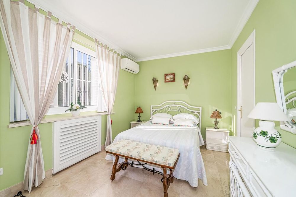 This stunning beachfront villa stands out with its expansive 9,000m2 plot of beautifully manicured gardens, a private tennis court, and a heated swimming pool complete with a bar area and a sauna. The Andalusian and Mediterranean style of the villa harmoniously blends with the surrounding scenery, creating a captivating atmosphere. Notably, the plot extends all the way to the beach, granting direct access to the pristine shoreline.