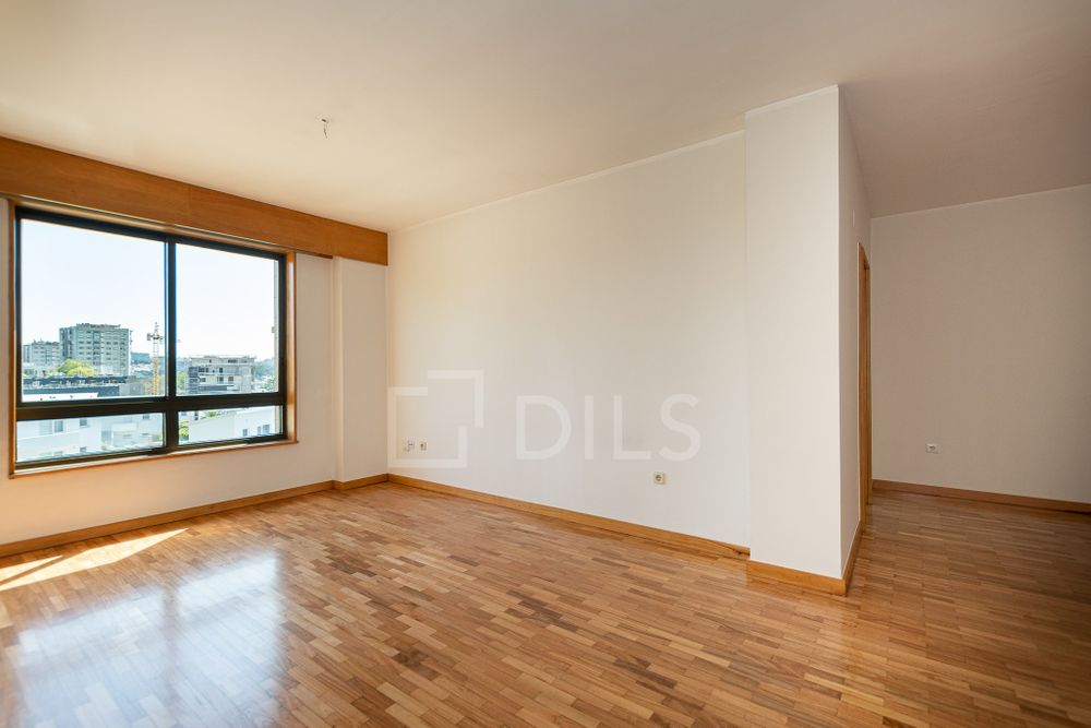 Apartamento T2 com 104m2, no 6º andar num edifício com 3 elevadores e porteiro, lugar de garagem e arrumos.