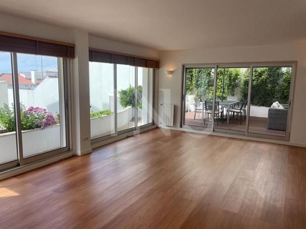 Apartamento T3 Duplex para arrendamento sem móveis, em condomínio fechado no Alto de Santa Catarina, em Algés. Imóvel em prédio recente, com 185m², constituído por: Hall de Entrada, sala com ...