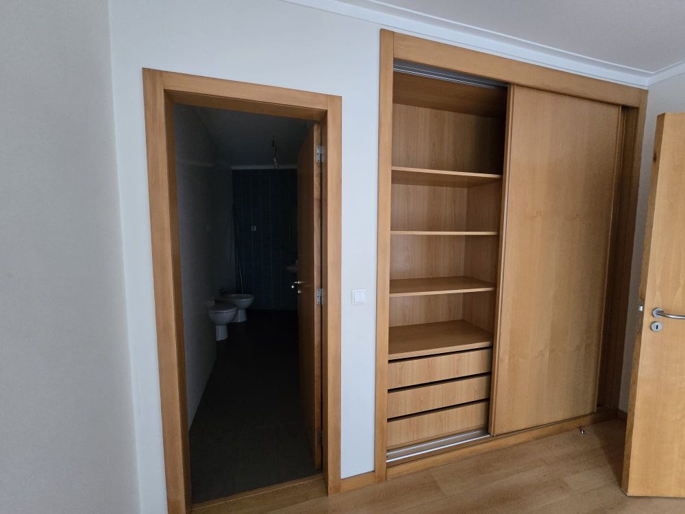 Dispõe de três quartos, todos com roupeiros embutidos que oferecem ótima capacidade de arrumação, sendo um deles uma suíte com casa de banho privativa.