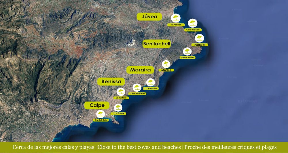 Don’t hesitate and come enjoy your vacation in Moraira. In this beautiful fishing village and its surroundings, you will enjoy a privileged environment with good restaurants, golf courses, sports and water activities, hiking, cultural visits, excellent health services, safety, and tranquility. The international airports of Alicante and Valencia are just 1 hour from Moraira. Within less than an hour’s drive, you can visit other well-known tourist destinations such as Benidorm, Denia, Alfaz del Pi, Castell de Guadalest, etc. You can also visit the famous Balearic Islands, Ibiza and Formentera, in just 2 to 3 hours by ferry.