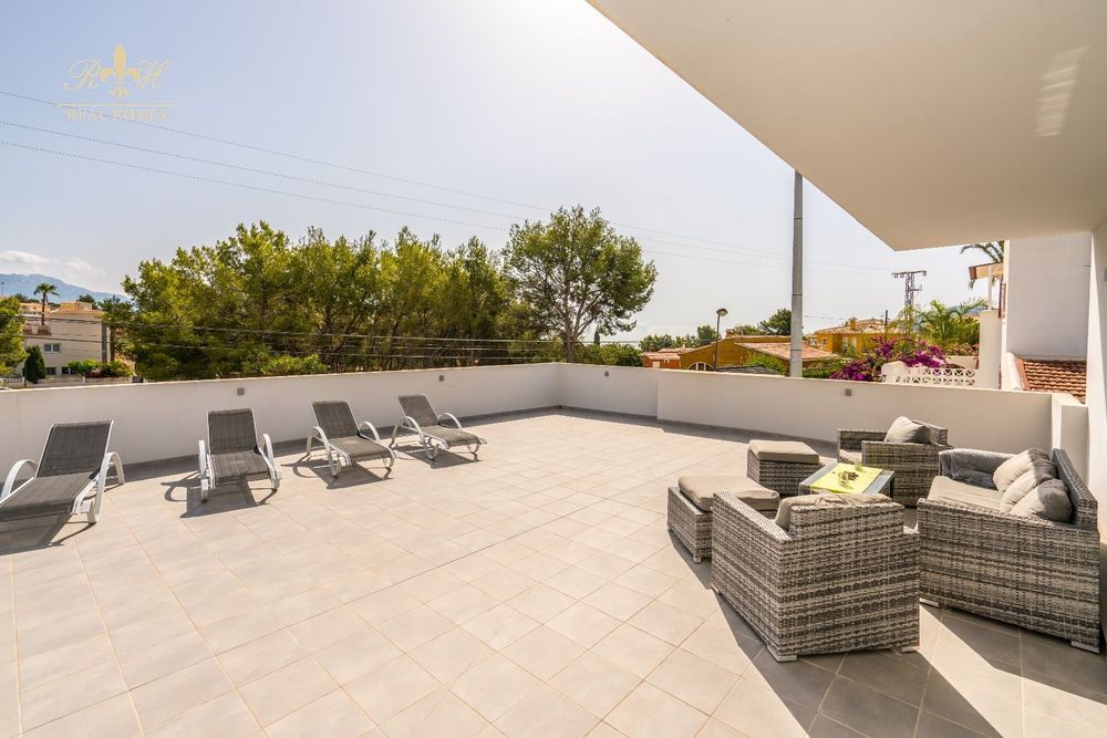 Este hermoso Chalet esta totalmente reformado en el año 2014 de alto nivel. La casa se distribuye en dos niveles en el 1er piso encontramos una amplia sala de estar y una cocina muy amplia, 3 dormitorios y 3 baños y un lavadero independiente con lavadora y secadora. En el 2do piso hay 2 dormitorios y 1 baño. Un dormitorio es una sala de televisión (con pantalla plana) que se puede utilizar como dormitorio con un sofá cama doble. Acceso directo a la piscina desde el salón y la cocina. Amplio jardín con mucho encanto y mucha tranquilidad.