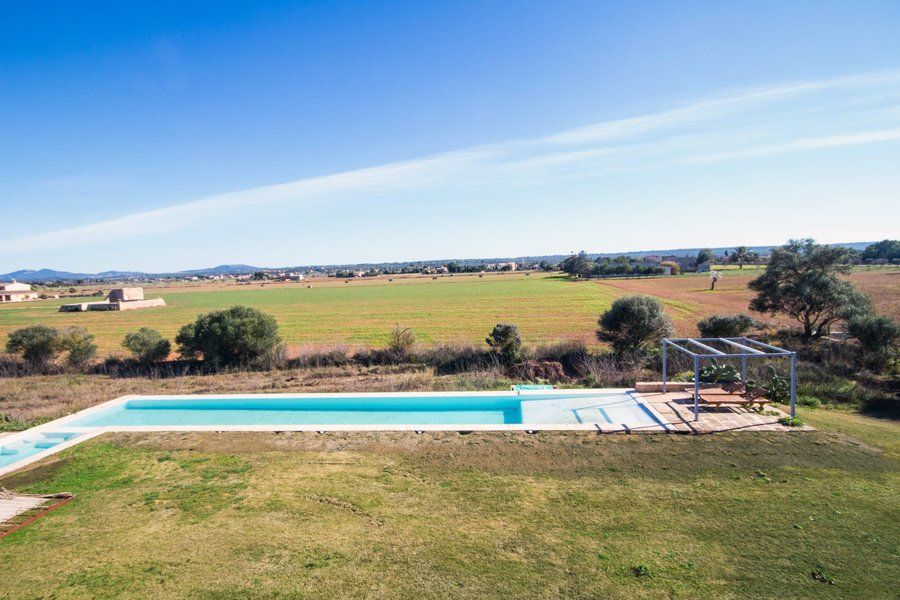Available from November to March for 4.500 EUR per month. For a one year contract 6.200 EUR per month and upfront payment. The best of two worlds, modern architecture integrated in fantastic country landscapes, only ten minutes from the renowned white sandy beaches of Es Trenc. The villa of approximately 400 sqm is built with local materials such as mares stone and is the perfect place for entertaining, with a very bright and spacious living room with various seated areas and exits to the wonderful garden, an open kitchen with utility room. Four bedrooms, all with bathrooms en suit and private exit to the beautiful exterior where of one is located on the second floor with a private terrace and amazing views to both the island of Cabrera and the mountain Puig Mayor.