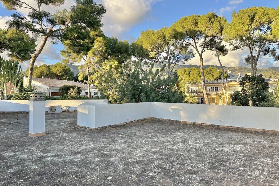 Available from March. This contemporary house is located in the prestigious area of Palmanova, just a 5-minute walk from the beach. It offers 3 spacious bedrooms, 2 bathrooms, and an additional guest toilet. The property also features a basement hobby room, a storage room, a large living room, and a fully equipped kitchen and dining area. Enjoy the outdoor spaces with a terrace and garden, and a rooftop terrace with stunning sea views. The house is unfurnished, allowing you to personalize the space to your liking. Additional features include a garage and a cozy fireplace. This home is situated in one of the best locations in the area.