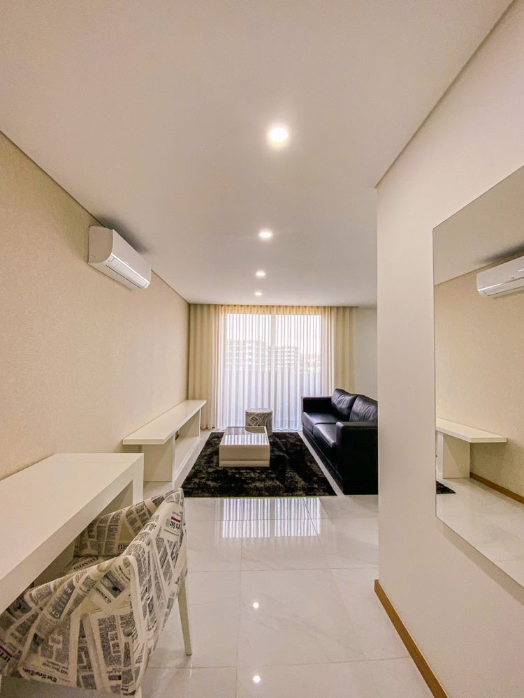 - Iluminação com focos embutidos, que proporciona um ambiente moderno e acolhedor