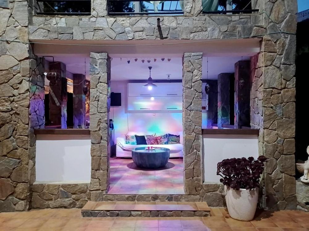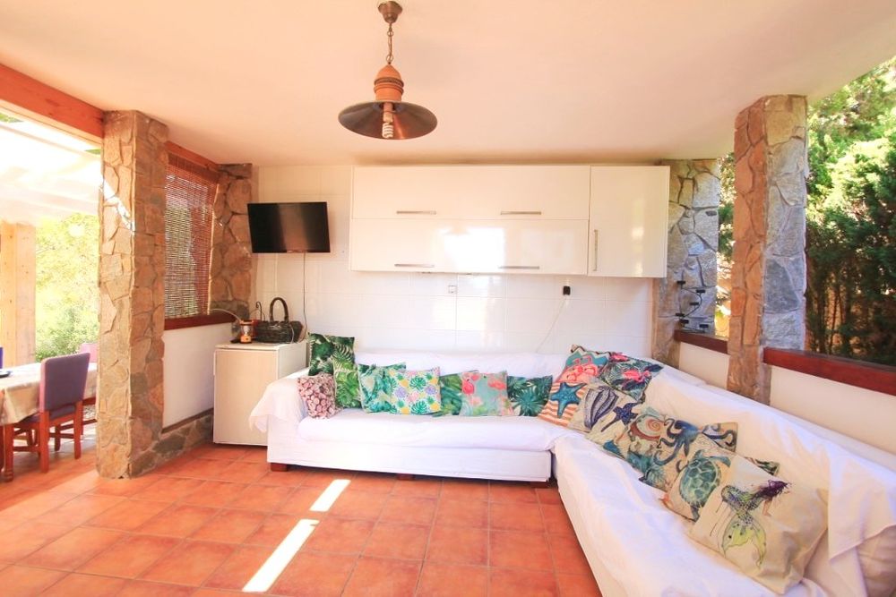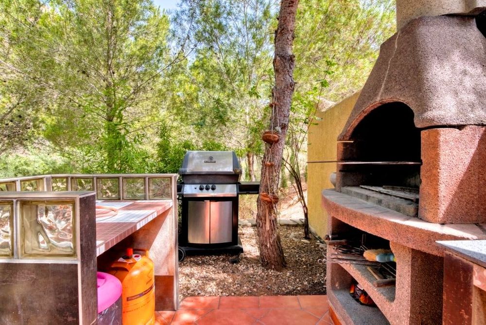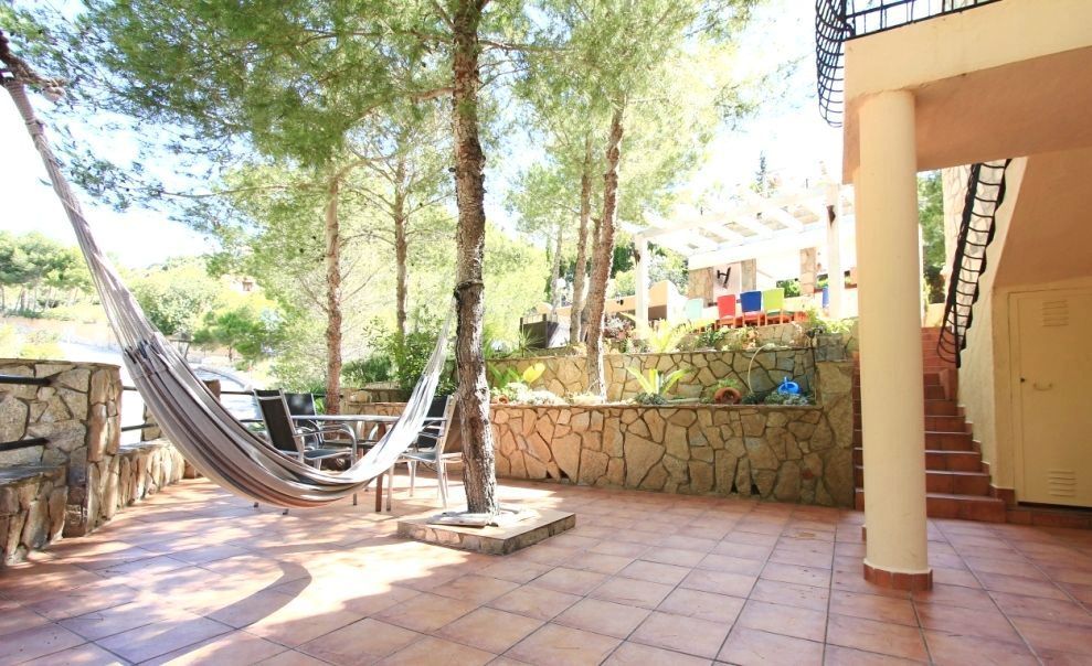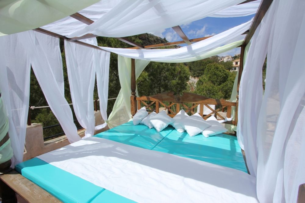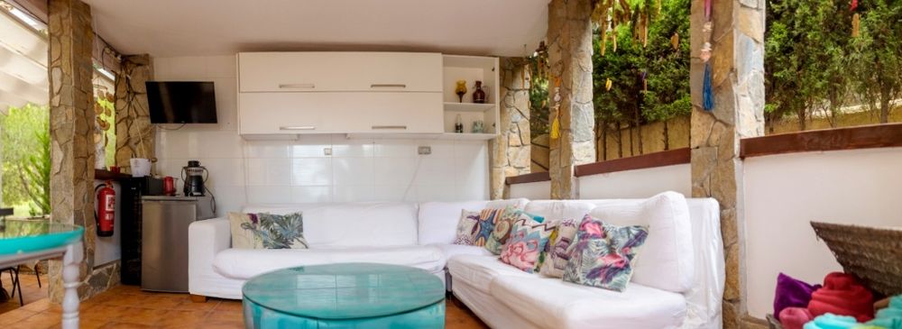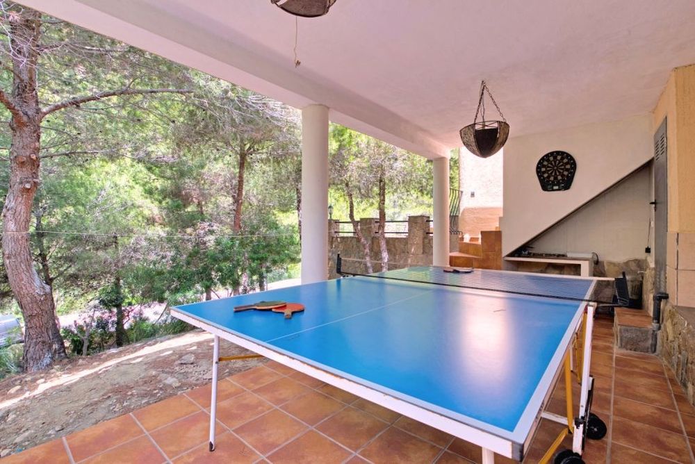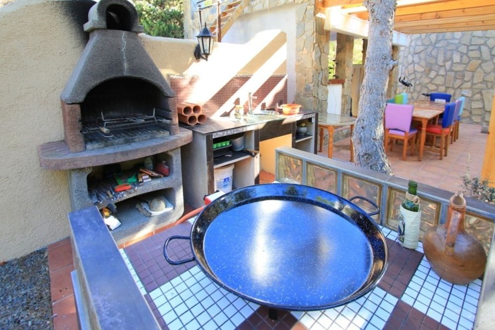 Barbecue area and paella area, covered chill-out area with various sofas, another covered terrace with a ping-pong table, upper chill-out area with sea views and a Balinese bed, private parking.