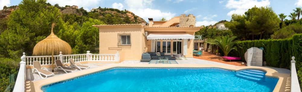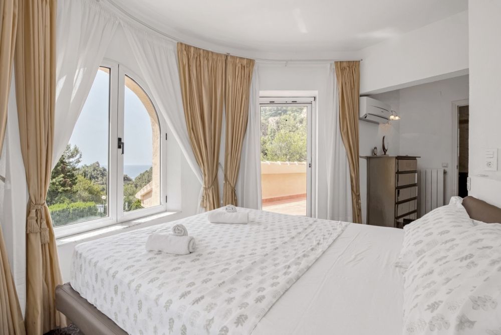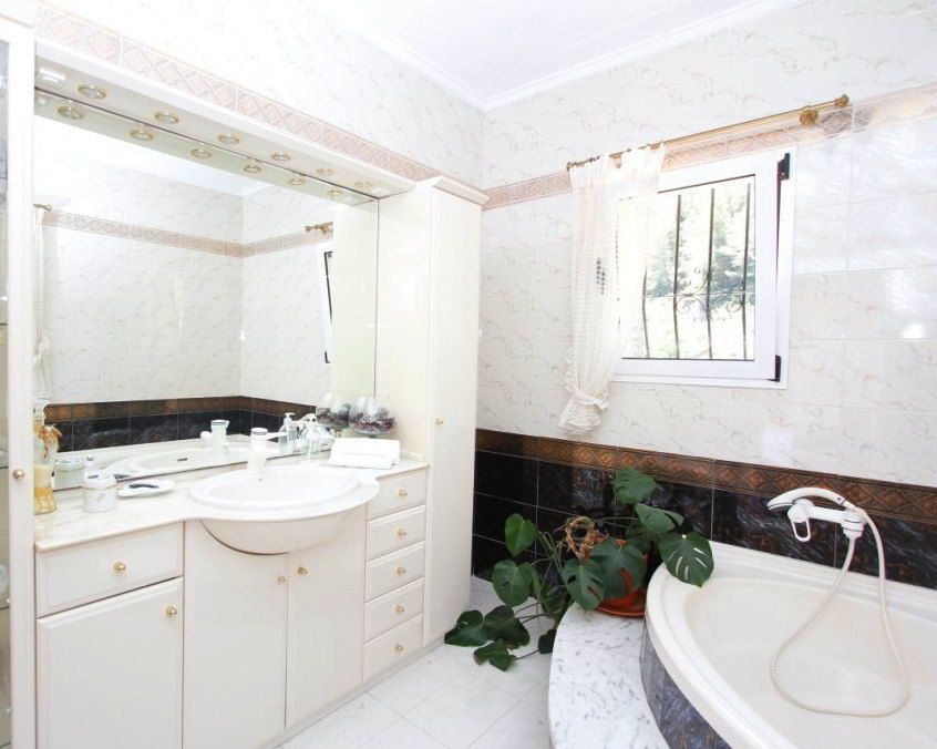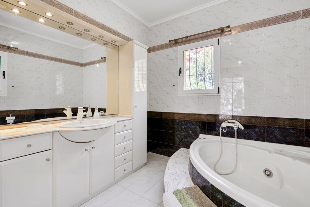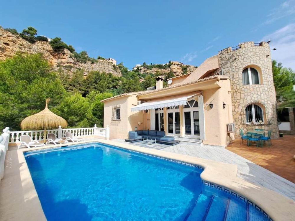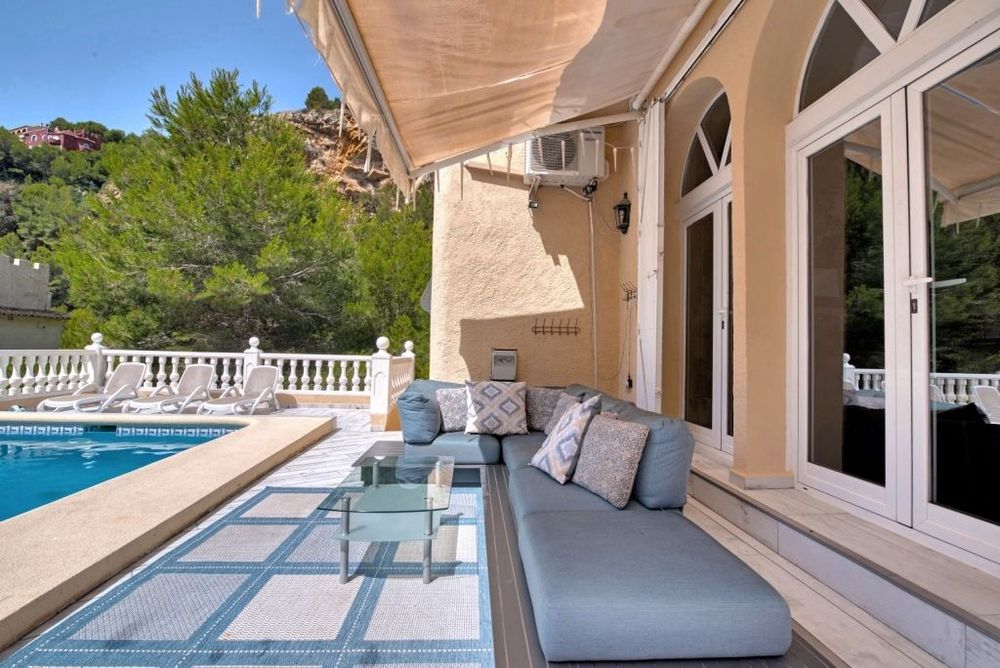 Villa with private pool and views of the sea and mountains, just 500 m from Cala Moraig. A high-quality house, in perfect condition, designed in a Mediterranean style with a combination of classic and modern design. 5 bedrooms, 4 bathrooms, 3 levels + solarium.