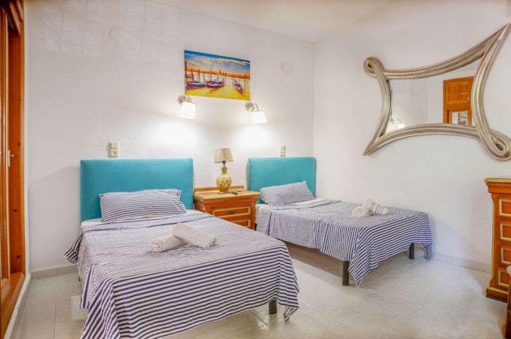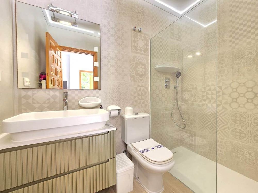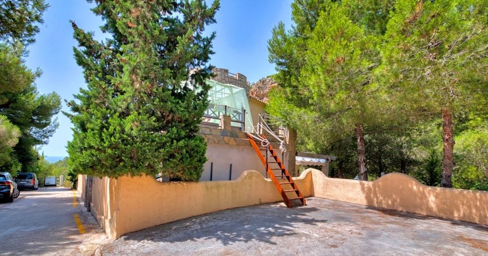 Main floor: 2 bedrooms with mountain views, bathroom with shower and washing machine, fully equipped kitchen, and separate dining room in the tower. Very bright living room with 3 large windows and direct access to the pool terrace and chill-out area. Spacious and cozy, with ceilings over 3 meters high, fireplace, TV, sofas, and views of the pool, mountains, and sea. On the ground floor, with an independent entrance, there are 2 large bedrooms and 2 fully renovated bathrooms with showers, a living-dining room with an American kitchen, and access to several terraces.