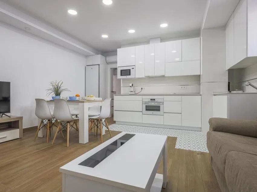 El salón-cocina-comedor es un espacio amplio. La cocina tiene encimera Dekton ® y está totalmente equipada (frigorífico, lavavajillas, horno, microondas, cafetera, tostador, exprimidor, batidora, menaje, etc. ). El salón-comedor dispone de luz indirecta, así como todo lo necesario (sofá, mesas, sillas, Tv de 55”, etc. ).