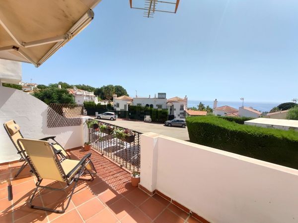 Luminoso apartamento en esquina. Con amplia terraza orientada al sur y bonitas vistas al mar. Este magnifico apartamento tiene una amplia terraza de 18m² con bonitas vistas al mar. Se distribuye en hall, habitación doble con armarios empotrados, baño completo con bañera, luminoso salón comedor con chimenea y salida a la terraza. Cocina abierta, completamente equipada e integrada en el salón.