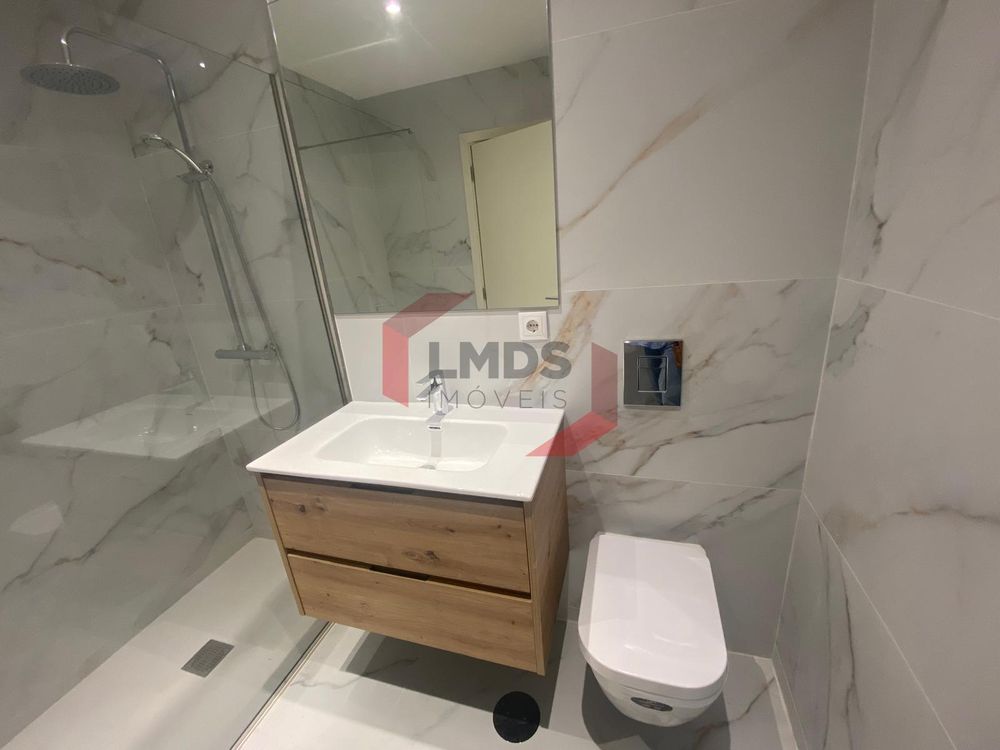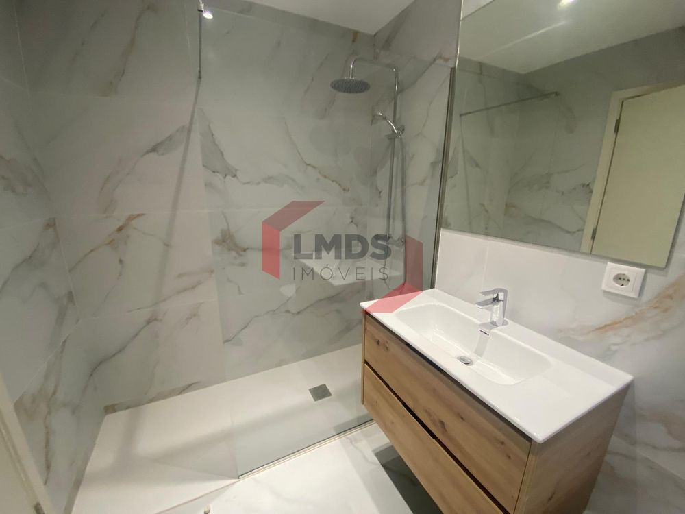 Casa de banho renovada, com linhas contemporâneas e materiais de qualidade.
