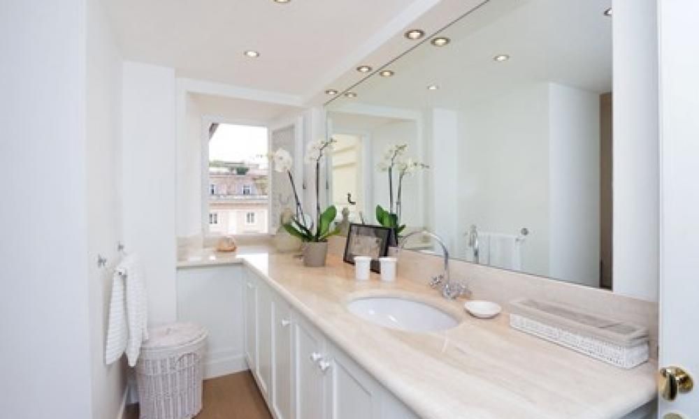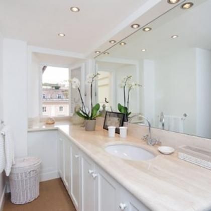 Bedrooms: Master Suite-Bright, south-facing bedroom with large bed, built-in closets and two doors opening onto charming little balcony with views over the surrounding rooftops and Piazza S. Lorenzo. Master bath: Newly renovated master bath with marble countertops, tub, and double basin.