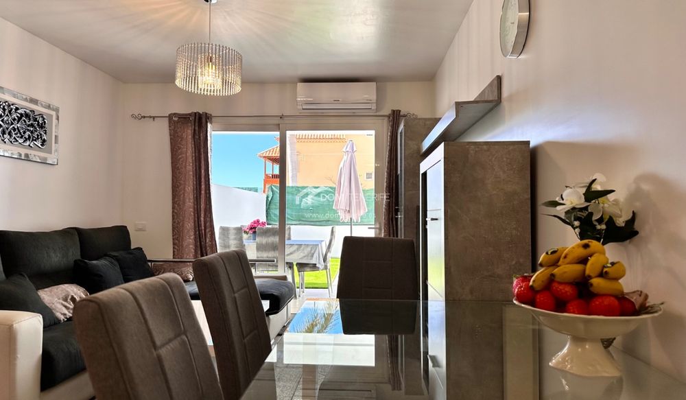 ALQUILER SOLO PARA 4 MESES SIN PRORROGA - desde de 1.06.2026 -01.10.2026. Bungalow de 2 dormitorios en alquiler en El Madroñal de Fañabé. Este acogedor bungalow está disponible situado justo al lado del colegio internacional. El bungalow cuenta con dos dormitorios y un baño, así como una increíble sala de estar con vistas a un bonito entorno. La ubicación es excelente, situado en una zona residencial, que proporciona fácil acceso a todo lo que la zona tiene para ofrecer. Disfruta de la belleza de la zona comunitaria y de la impresionante piscina. Hay una plaza de aparcamiento disponible. Ten en cuenta que no se admiten mascotas. ¡No te pierdas la oportunidad de experimentar el tranquilo estilo de vida residencial que ofrece este apartamento!
