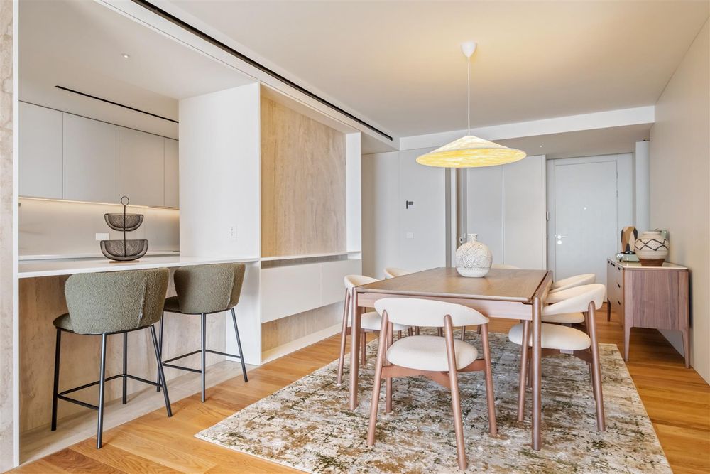 O apartamento é composto por uma espaçosa suite, uma casa de banho adicional, e uma ampla sala de estar. O espaço exterior conta com uma varanda, perfeita para momentos de descanso, enquanto o interior apresenta acabamentos de elevado nível, conferindo-lhe um ambiente requintado e acolhedor, conta também com dois lugares de estacionamento em box, garantindo total segurança e privacidade. A arrecadação na cave adiciona uma praticidade extra à habitação. O imóvel construído em 2024 está em excelente estado, totalmente equipado e mobilado pela intemporâneo, pronto a habitar com um design intemporal e sofisticado.