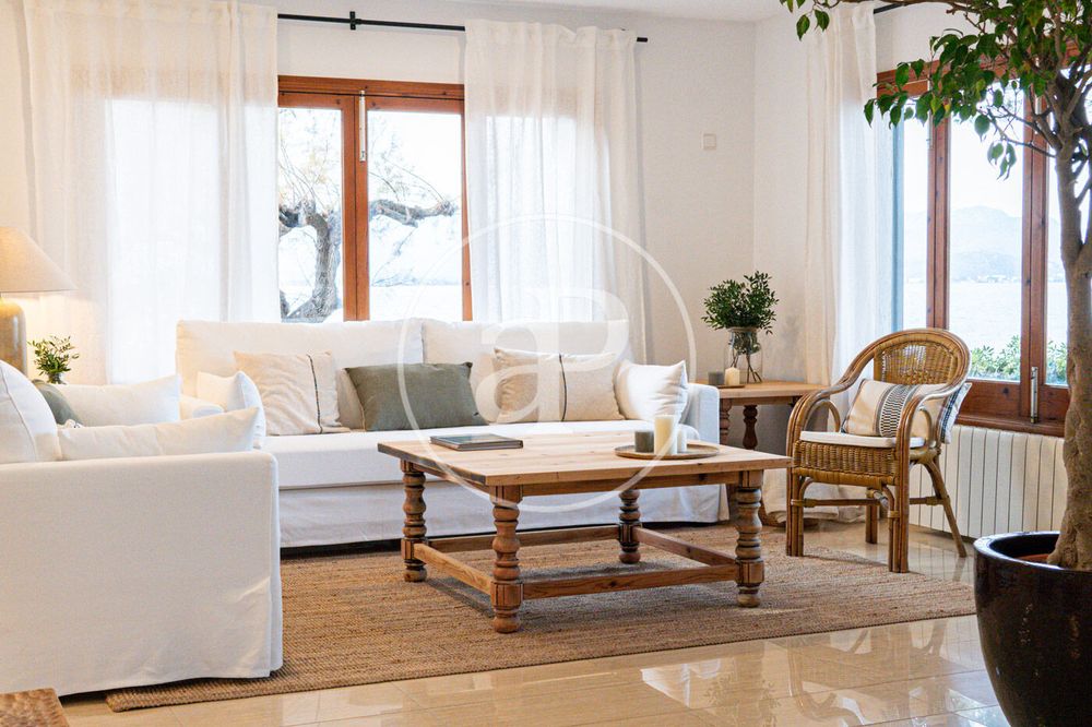 AVAILABLE IN LONG STAY FROM THE 1ST OF OCTOBER AVAILABLE IN SHORT STAY ONLY THE MONTHS OF MAY - JULY - SEPTEMBER (minimum 32 nights). PRICES ON REQUEST This charming house of 120 sqm plus 175 sqm of terraces, on the sea front in Alcudia offers a unique living experience. The house has been refurbished with attention to detail and stylishly decorated, creating a cosy and inviting atmosphere. It has a living-dining room and a fully equipped kitchen. There are two bedrooms and two bathrooms. The property has three terraces offering stunning views of the sea and the surrounding environment. These terraces, totalling 175 sqm, provide an exceptional outdoor space where you can enjoy the Mediterranean climate all year round, these terraces are the ideal place to relax and enjoy the coastal environment. In addition, the house has a large garden with trees and lawn. Brightness is a prominent feature of this house, thanks to its design that maximises the entrance of natural light. This creates a warm and welcoming atmosphere at all times. Furthermore, the garden that accompanies the property adds a touch of nature and offers additional space to enjoy the outdoors. Can you imagine living here, we look forward to your call!