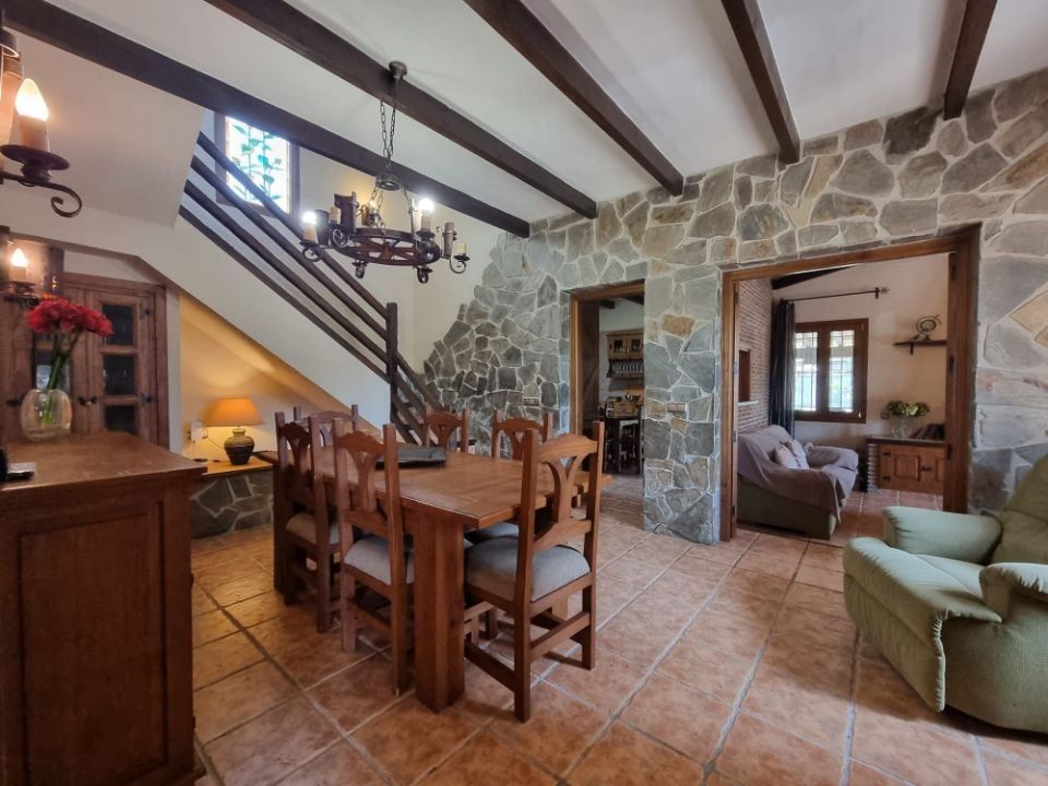 The house is distributed over two floors. On the ground floor, there are three double bedrooms and two bathrooms (one en suite), a separate dining room, a spacious living room with a fireplace, and a large fully fitted kitchen with direct access to a covered terrace with a barbecue area and utility room. On the top floor there is another bedroom with a bathroom and access to a beautiful terrace with stunning views.