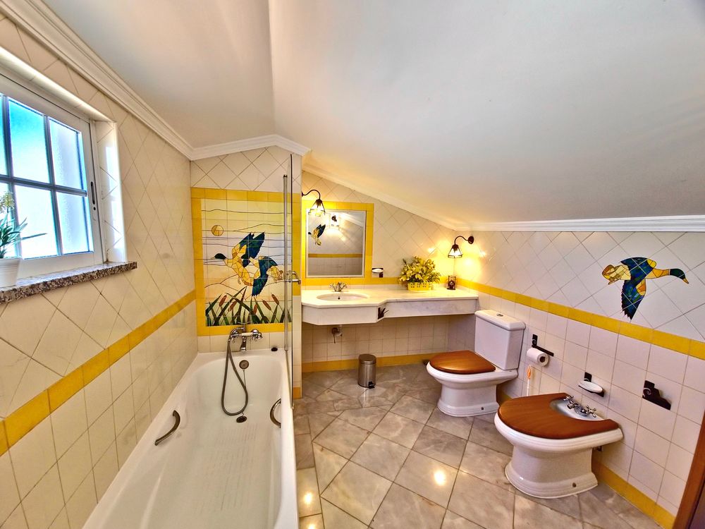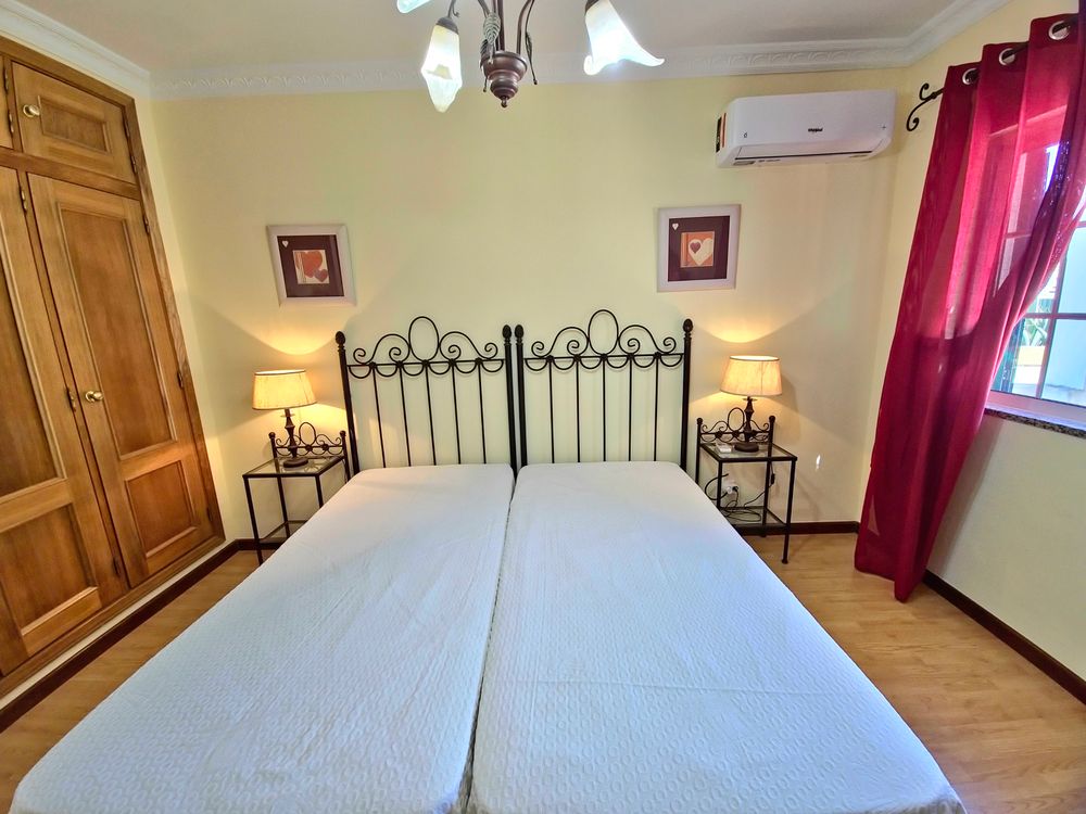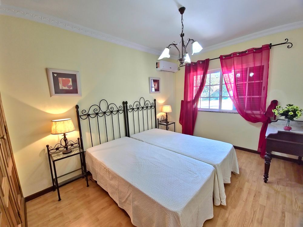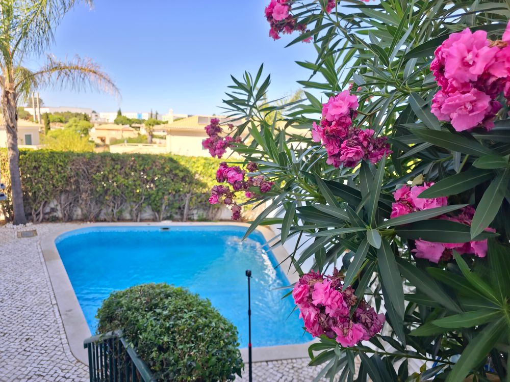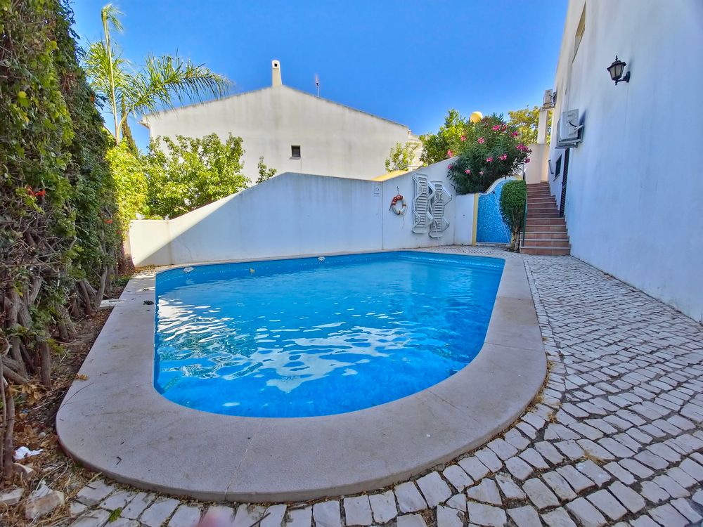 Moradia V4 com piscina, totalmente equipada e mobilada. Localiza-se em zona tranquila da cidade de Albufeira, perto do Montechoro, do Hospital dos Luziadas e do Golfe do Hotel Real Belavista, e com excelentes acessos. É constituída por 4 quartos (dois deles em suite) todos com ar condicionado, sala bem dimensionada, com lareira e com várias zonas distintas (zona de estar, zona de leitura e sala de jantar) com ar condicionado, cozinha grande totalmente equipada, 4 casas de banho, despensa e arrecadação. Zona exterior com dois enormes terraços, onde é possível relaxar e tomar deliciosos jantares ao ar livre. Contempla ainda Piscina, chuveiro exterior e barbecue. Uma casa perfeita para quem aprecie espaços amplos, muita luminosidade e zonas de relax. A poucos minutos da praia, de shopping, de campos de golfe e de todo o tipo de comércio e de serviços. A 20 minutos do Aeroporto Internacional de Faro.