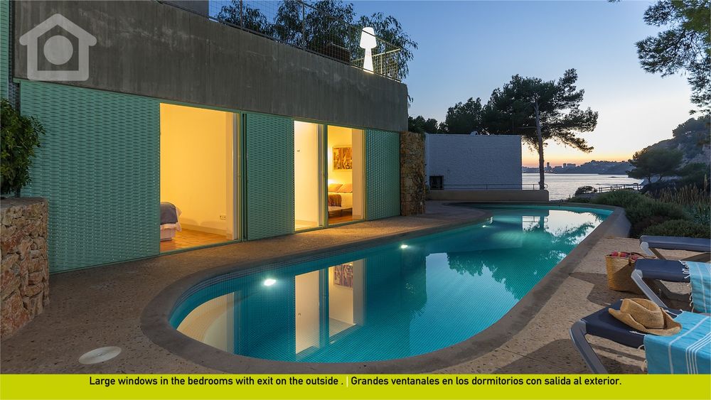 The property is new and of exquisite design. Built in 2012, it is one of the best design villas by the sea. It features spacious terraces with numerous plants and trees where you can enjoy a family lunch or dinner while watching the sea and being caressed by its pleasant breeze. It has a beautiful terraced garden and a swimming pool with sea views. The rooms are very spacious and bright, and directly communicate with the garden and pool. The property has air conditioning and heating in all rooms, WIFI internet connection, satellite, music system, plasma TV, etc. The entire house has large sliding doors and windows that, when opened, hide inside the structure, thus combining indoor and outdoor spaces, achieving great spaciousness and natural brightness.