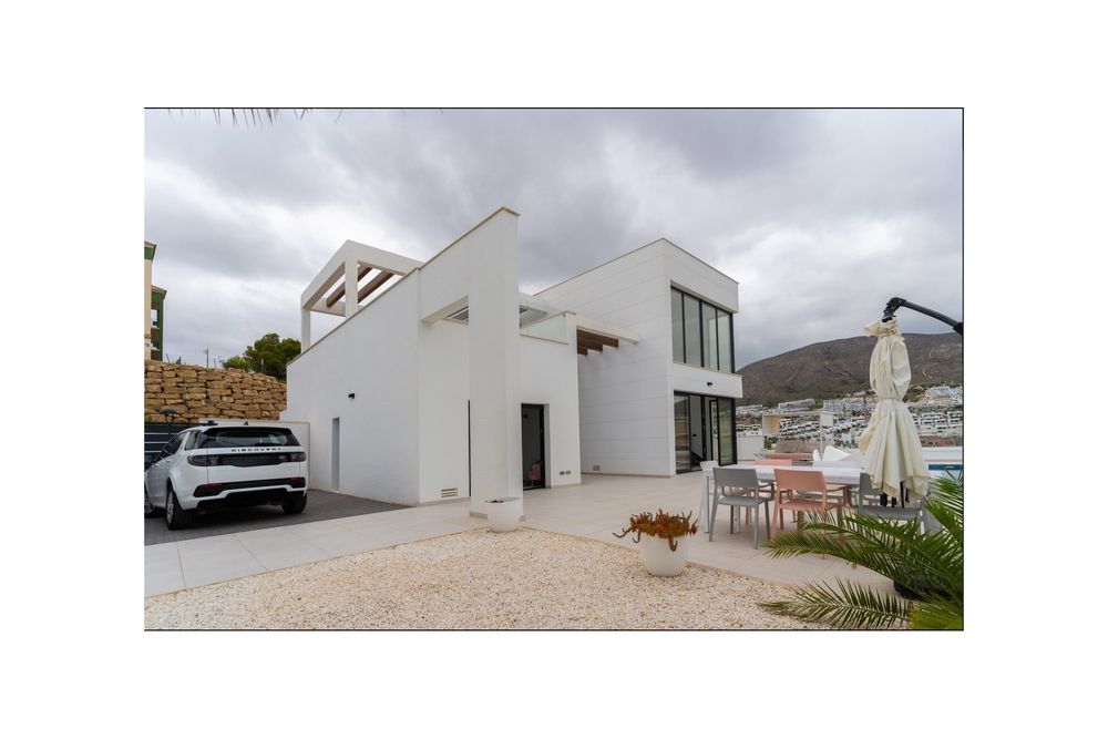 Situated in the sought-after area of Finestrat, Costa Blanca North, this modern luxe villa offers an exceptional long-term rental opportunity. Spanning 273 m² on a 469 m² plot, this single-story home features 3 spacious bedrooms and 2 well-appointed bathrooms, designed for comfort and style. The open-plan American kitchen seamlessly connects to a bright living room, creating an inviting space perfect for relaxation and entertaining.