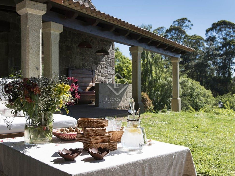 This property located in Nandin-Nigran, a small village situated a short distance to Playa America, the charming town of Gondomar and a short drive to Vigo, approximately 20 minutes. We offer this lovely stone house for daily rental located on a large private plot on top of a hill with spectacular mountainside views and sea views. Inside the property, we are welcomed by a large path that leads to the villa. Here we have the staircase that leads to the entrance of the villa. Upon entering, we find an open plan, bright and cosy space in which we find the fully equipped kitchen, dining and living room, which offer large windows that benefit from lots of natural light inside and splendid views of the garden area. On the first floor, we find the sleeping area with three good-sized bedrooms and a small study. The garden section is situated on an uphill slope with different paths and levels. Here you will find the large swimming pool with a chill-out area, lovely terraces overlooking the garden. All situated in a natural setting, suitable to enjoy with family and friends or just an environment to relax and disconnect. The property is for let for a minimum of 6 months. It is suitable for 6 people, and it is equipped with all the necessities required and good internet speed. Please contact Lucas Fox for availability.