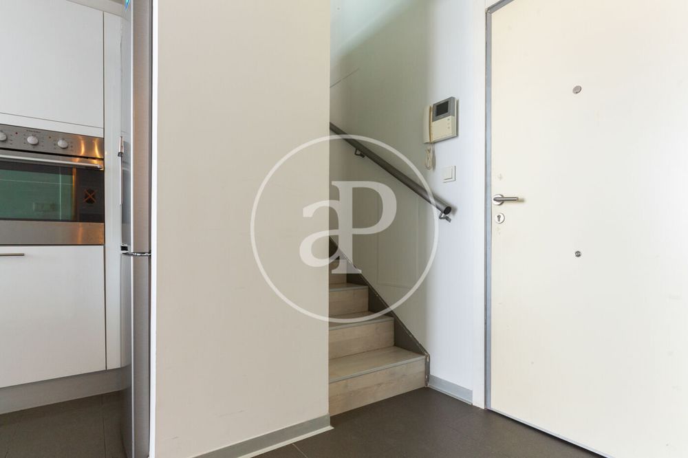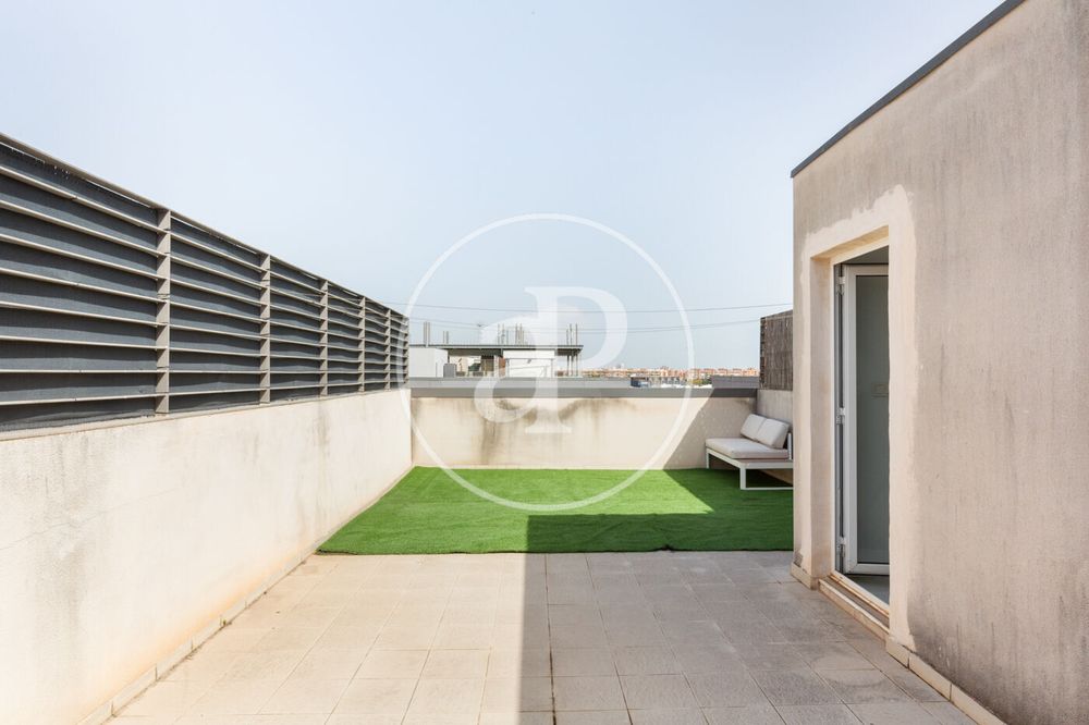aProperties presents this charming top-floor loft-penthouse with 110 m² distributed across three levels. On the first floor, you’ll find a fully equipped open-plan kitchen, a bright living-dining room with direct access to the balcony, a bathroom with shower, and a pantry/storage room. From this area, you can access the two upper levels. On the first upper floor is the master bedroom, featuring a storage bed with lift-up base and a built-in wardrobe. Continuing upwards, you reach the spacious open terrace, offering breathtaking views thanks to its height and unobstructed location. This loft-penthouse includes ducted hot/cold air conditioning, parquet flooring, and a large aluminium window that fills the home with natural light. The community fees include water. Located in the "ROS CASARES" Business Park, next to the Gran Turia Shopping Centre, the residential complex offers beautiful communal green areas. The presence of a community pool adds a refreshing touch, making it perfect for summer enjoyment. The building features an elevator and concierge service, and a parking space is included in the price. Pets are not allowed. If you're looking for a modern design in a peaceful setting, this loft-penthouse will impress you. In short, it's a unique and appealing property that can be enjoyed all year round. If you are interested in viewing this property, don’t hesitate to contact us. We’ll be happy to assist you.