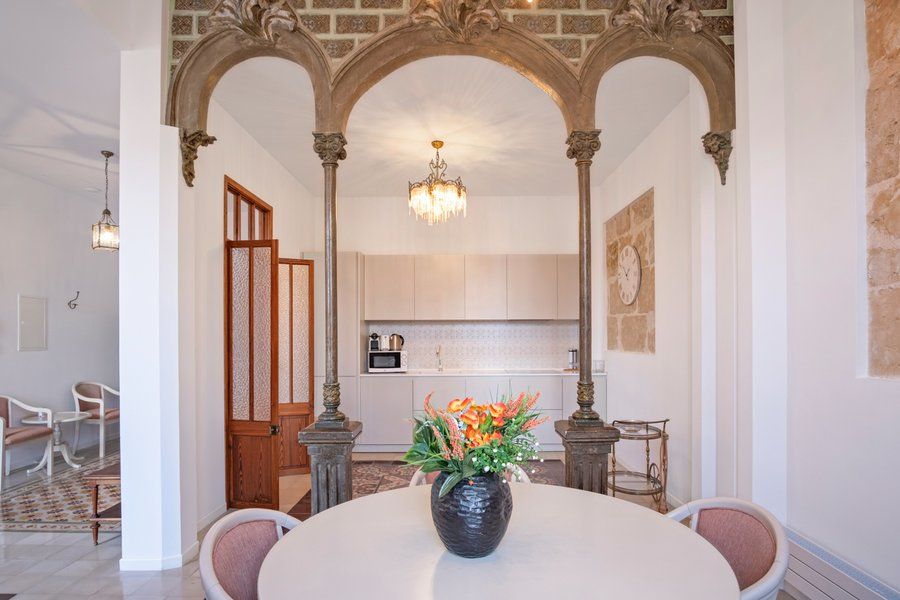 Available for temporary letting from June. This cozy, elegant apartment is located in the heart of Santa Catalina, within walking distance to restaurants and shops. The apartment with elevator is located on the first floor and offers a spacious, open living and dining area with a small balcony and adjoining kitchen, a small room and a bathroom, as well as a double bedroom with bathroom en suite and access to the approximately 12 sqm terrace. The apartment is very tastefully, elegantly and high quality equipped. Ancillary expenses are set at 400 euros per month.