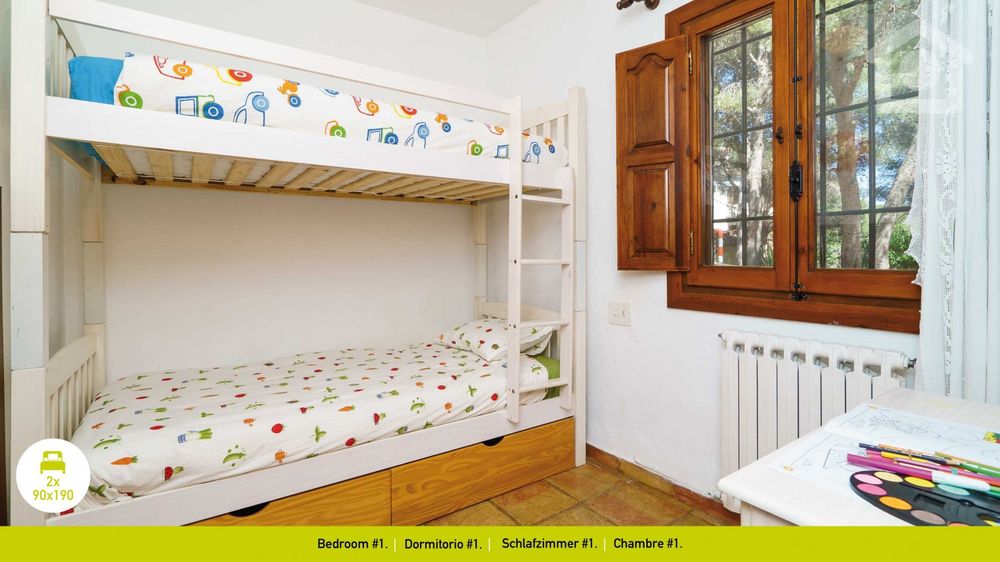 The property is divided into two floors. Its layout is perfect for making the most of the sea views from the main rooms. On the ground floor, you will find the kitchen, dining room, bedroom #1 with bunk beds and bedroom #2 with a single bed and a balcony with beautiful views. Both bedrooms are close to bathroom #1 with a shower. If we go up to the first floor, we have access to bedroom #3, a double room with an en-suite bathroom and a terrace with incredible sea views. On the other hand, there is bedroom #4, also for two people and very cosy. Bedroom #3 and the dining room have air conditioning. The rest of the bedrooms have a ceiling fan. The entire property has central heating with water radiators. The property also has a garage for a large car and a parking area for 3 more cars.