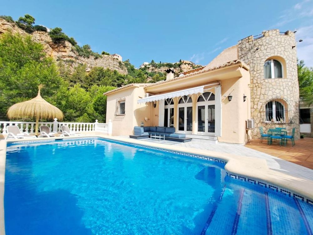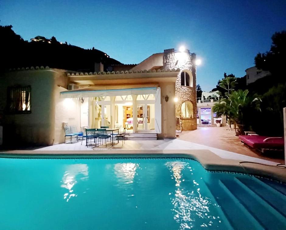 Villa with private pool and views of the sea and mountains, just 500 m from Cala Moraig. A high-quality house, in perfect condition, designed in a Mediterranean style with a combination of classic and modern design. 5 bedrooms, 4 bathrooms, 3 levels + solarium.